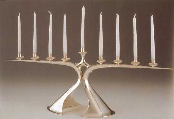Features two Shabbat Candle Holders and a Kiddush Cup, seen right, and a Chanukah Menorah, seen below by Michael and Maureen Banner